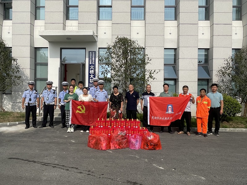 為表達(dá)對辛苦執(zhí)勤的一線交警及道路管養(yǎng)人員的敬意和慰問,7月18日下午,蕪湖長江大橋投資建設(shè)有限公司開展了共建慰問送清涼活動,公司為一線交警及城建集團道路管養(yǎng)人員送上了清涼的飲用水、防曬用品等物資。